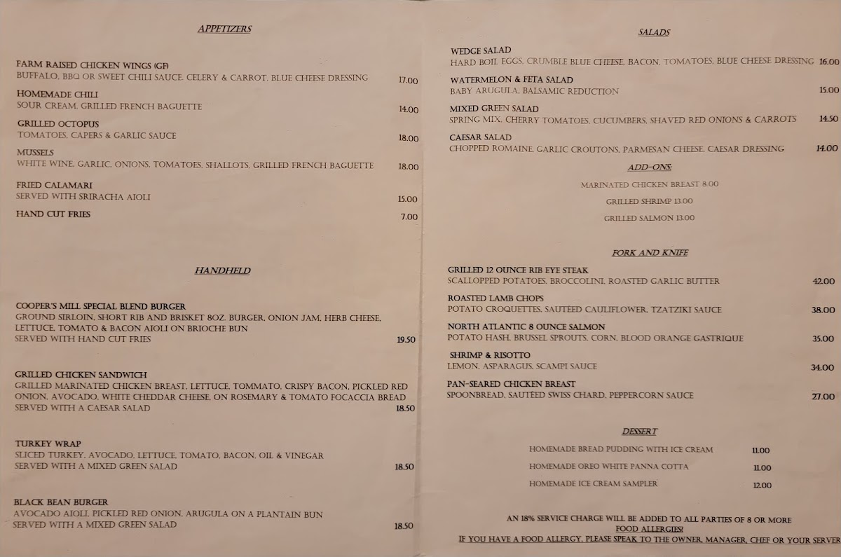With its fabulous menu and warm hospitality, Cooper's Mill is definitely worth a visit!